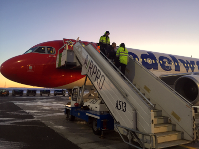 Mit dem eigenen Rollstuhl ins Flugzeug steigen ist unmöglich, sogar über die Passagierbrücke. Zu eng der Eingang, zu eng der Gang zwischen den Sitzen. Also gibt’s einen schmalen Faltrollstuhl für den Transfer zum Sitzplatz. Der eigene Rollstuhl kommt im Frachtraum mit. Kosten tut das übrigens nichts, die Airlines sind verpflichtet, Menschen mit eingeschränkter Mobilität das Reisen genauso zu ermöglichen wie allen anderen.