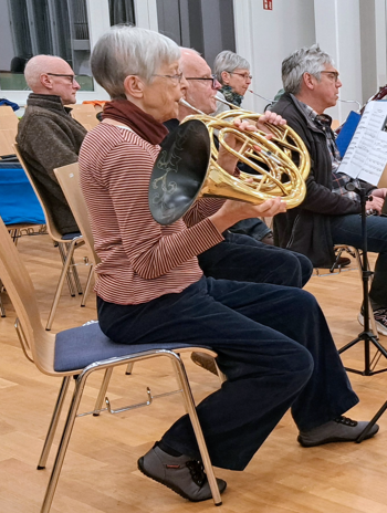 Brigitte Sensenschmidt entschied sich damals für das Waldhorn. Ein anspruchsvolles Instrument, bei dem es auf die richtige Lippentechnik ankommt und auf Fingerfertigkeit. Denn die linke Hand bedient die Ventile, mit deren Hilfe man die Tonhöhe verändern kann.