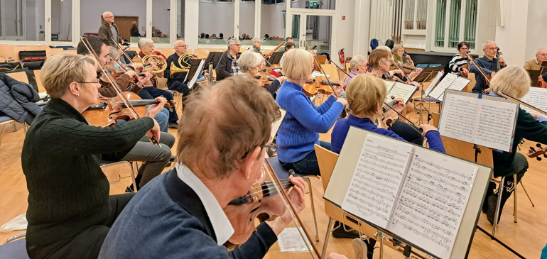 Der Zufall und ein Umzug in die Nähe von Bonn lösten dieses Problem. Brigitte trat dort in das Bad Godesberger Kammerorchester (externer Link) ein, bei dem ihr Mann Bernd schon länger Mitglied war. Wie es sich für Ensembles aus der Nähe von Bonn gehört, hat dieses Orchester viele Stücke von Ludwig van Beethoven, einem gebürtigem Bonner, im Repertoire, aber auch von Joseph Haydn, der als Förderer des jungen Beethoven gilt, und anderen „klassischen“ und romantischen Komponisten bis Mitte des 19. Jahrhunderts.