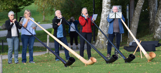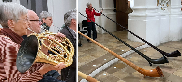„Nachdem ich dann nach der Klinik wieder zuhause war und mich zurechtgekramt hatte, dann fing das wieder an mit der Musik“, erzählt die heute 77-Jährige. Sie spielt nach wie vor mit großer Begeisterung in einem Orchester. Ihre Instrumente: Horn und Alphorn. Beide kann sie ohne Modifizierungen nutzen.