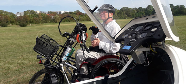 Im Sommer 2023 wagte Paraplegiker Bernhard Kähny (siehe auch: Leben mit Querschnittlähmung: Bewegungstraining für mehr Lebensqualität) das Abenteuer Segelfliegen. Er suchte nach einer umweltfreundlichen Alternative zu motorbetriebenen Kleinflugzeugen und fand online den Flugsportring Kraichgau bei Sinsheim. Hier brauchen Menschen mit Querschnittlähmung beim Ein- und Aussteigen zwar Hilfe, da es keinen barrierefreien Zugang zur Kanzel gibt, aber „… die Leute vom Flugsportring sind gut im Training. Es wird in aller Ruhe gemeinsam daran gearbeitet, wie es gehen kann“, so Kähny. „Sie wissen, dass unterschiedliche Bedürfnisse entsprechende Maßnahmen erfordern, um den Flug sicher und erfreulich zu gestalten.“ Das Fliegen kann vollständig unabhängig stattfinden, vom Start bis zur Landung, wenn man dies denn möchte.