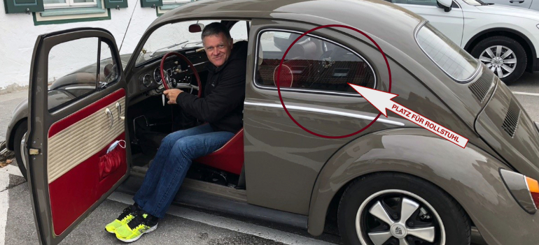 Leben mit Querschnittlähmung: Klaus Peter Hölzl liebt seinen kleinen Fuhrpark aus adaptierten Rennwägen und einem VW Käfer