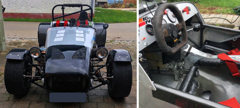 Der Käfer ist im Sommer mehr oder weniger der Daily-Driver: „Meine drei Kinder, der Rollstuhl, das Vorspanngerät … hat alles im Käfer Platz. Damit fahre ich gerne zum Baden.“ Wenn er sich hinter Caterhams Lenkrad klemmt, werden die Räder des Rollstuhles am Überrollbügel festgebunden; „geht alles“.