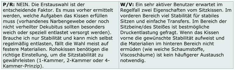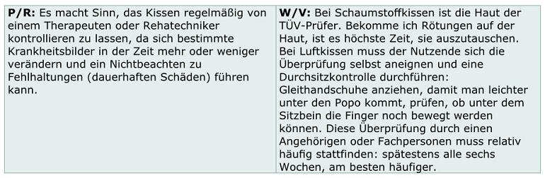 Der-Querschnitt.de hat die Frage nach der Lebenserwartung von Rollstuhlkissen mehreren Herstellern, bzw. deren Deutschland-Vertrieb, vorgelegt. Hier die Fragen und die – weitestgehend wörtlich wiedergegebenen – Antworten von zwei Unternehmen (Permobil/Roho sowie Wolturnus/zum Zeitpunkt der Anfrage Vertrieb Vicair. Seit September 2024 liegt der Vertrieb von Vicair in Deutschland, Österreich und der Schweiz bei t-rv), die sich sehr ausführlich zur Problematik geäußert und zusätzlich ihre Einschätzung einzelnen Kissen-Arten formuliert haben. (Für Informationen zu den unterschiedlichen Varianten, Materialien und Aufbau von Sitzkissen siehe Beitrag Sitzkissen für Rollstühle).