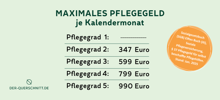 Zum Stichtag 1. Januar 2025 stiegen laut Gesundheitsministerium alle Leistungssätze der Pflegeversicherung um 4,5 Prozent. Im häuslichen Bereich genauso wie im teil- und vollstationären Bereich. Gleiches gilt für Pflegegeld und ambulante Sachleistungen.
