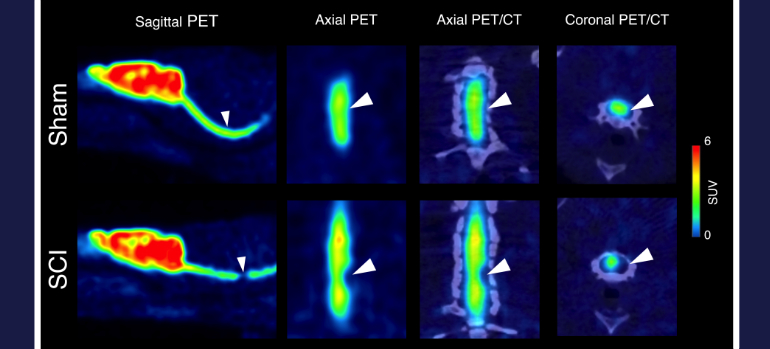 Doch auch am lebenden Tier ließ sich ein klarer Zusammenhang zwischen dem Ausmaß der Schädigung und der SV2A-PET-Bildgebung herstellen: „Die SV2A-PET-Bildgebung ist ein wertvolles Instrument zur Bewertung neuer Therapeutika“, schreiben Bertoglio und sein Team in einer Veröffentlichung aus dem Jahr 2022, in der sie die klinische Bewertung von Querschnittlähmungen mit der neuen PET-Bildgebung dringend empfehlen.