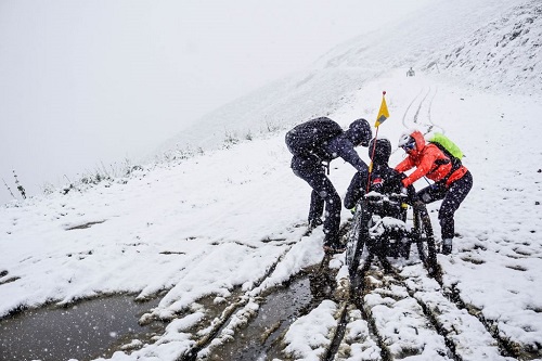 An einem Tag muss die Gruppe sogar geteilt werden, denn der Versuch, das Tuxer Joch bei diesen Wetterbedingungen mit dem Handbike zu queren, scheint aussichtslos. Die Realität gibt dem Team recht, als die Mountainbiker Stunden später knietief im Schnee versinken. Eine kleine Gruppe von Handbikern entscheidet sich gegen einen Transfer und kämpft sich auf anderen Wegen zur nächsten Unterkunft: Das Zillertal raus, das Inntal entlang und hoch Richtung Brenner nach Nösslach.