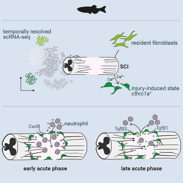 Indem spezielle Bindegewebszellen die Entzündung und die Bildung von Narbengewebe regulieren, können beim Zebrafisch (Zebrabärbling) nach einer Rückenmarksverletzung Nervenbahnen wieder nachwachsen. Die Erkenntnisse könnten langfristig einen Ansatz für die Entwicklung von Therapien auch bei Menschen bieten.