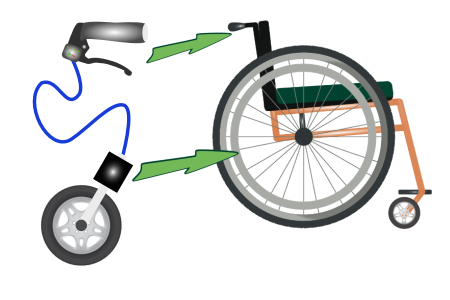 Aufsteckantriebe finden sich unter vielen Bezeichnungen im Handel, unter anderen: Elektrischer Selbstfahrantrieb für Faltrollstühle oder auch elektrischer Rollstuhlantrieb.